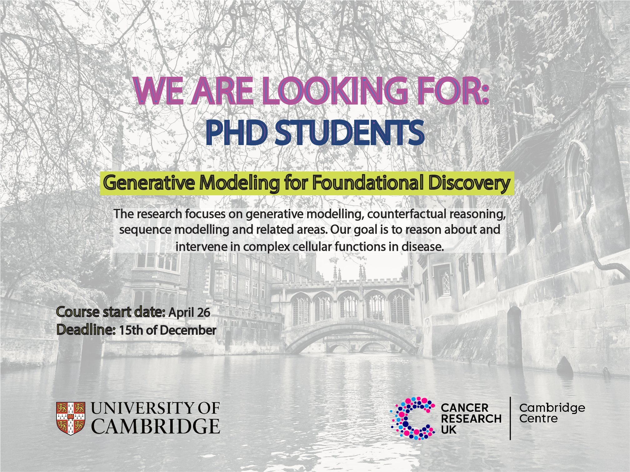 CRUK CI PhD Studentship in Generative Modelling for Foundational Discovery in Biomedicine
