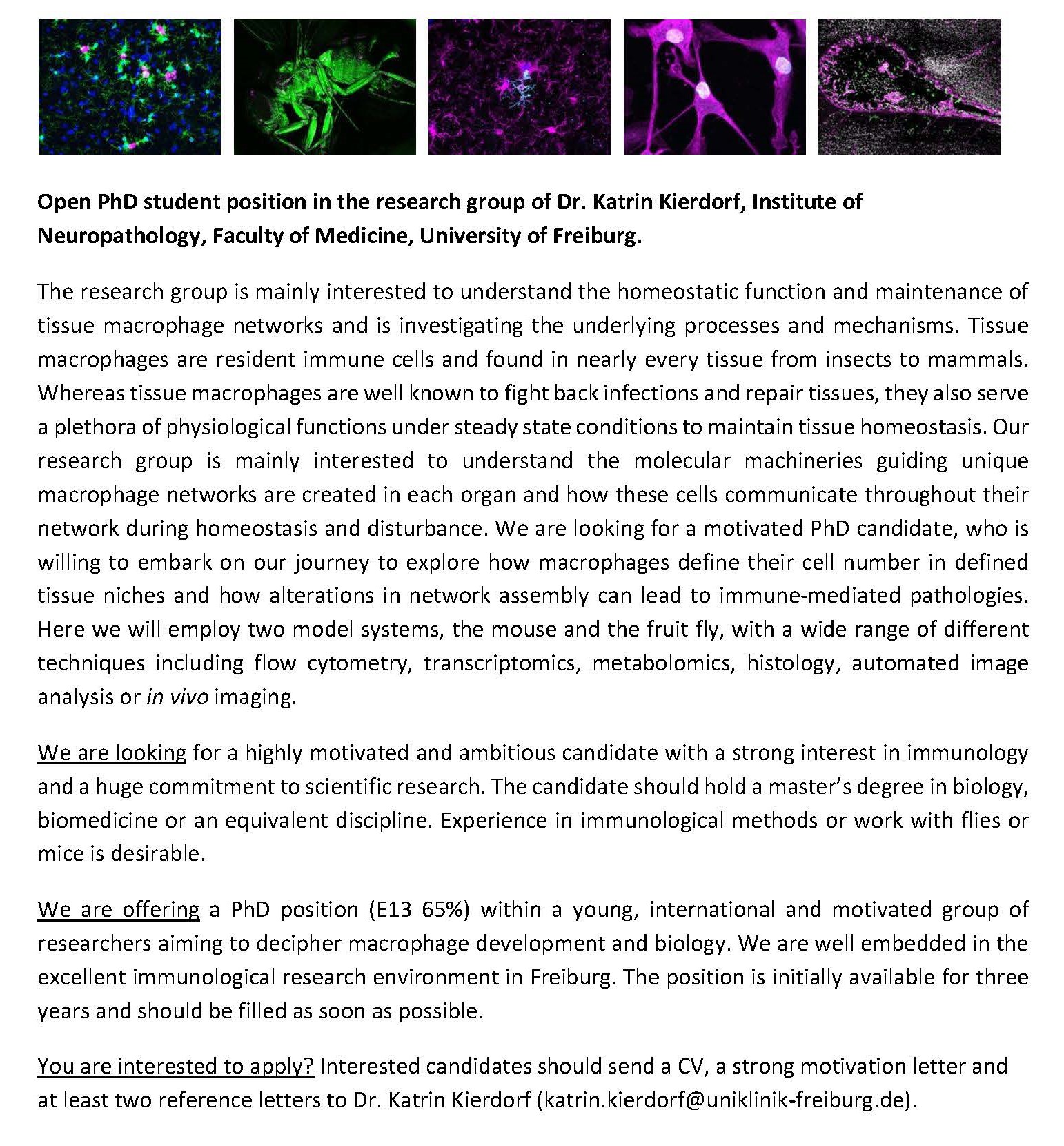 How to Apply: Interested candidates should send the following application materials to Dr. Katrin Kierdorf (katrin.kierdorf@uniklinik-freiburg.de):