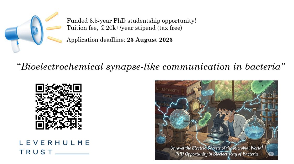 PhD Studentship in Bacterial Electrical Signalling: The University of Warwick invites applications for a fully funded PhD studentship focusing on the characterization of synapse-like electrical signalling in Bacillus subtilis. This unique project seeks to explore the molecular machineries of bacterial electrical communication, aiming to enhance our understanding of both bacteria-bacteria and bacteria-human interactions.