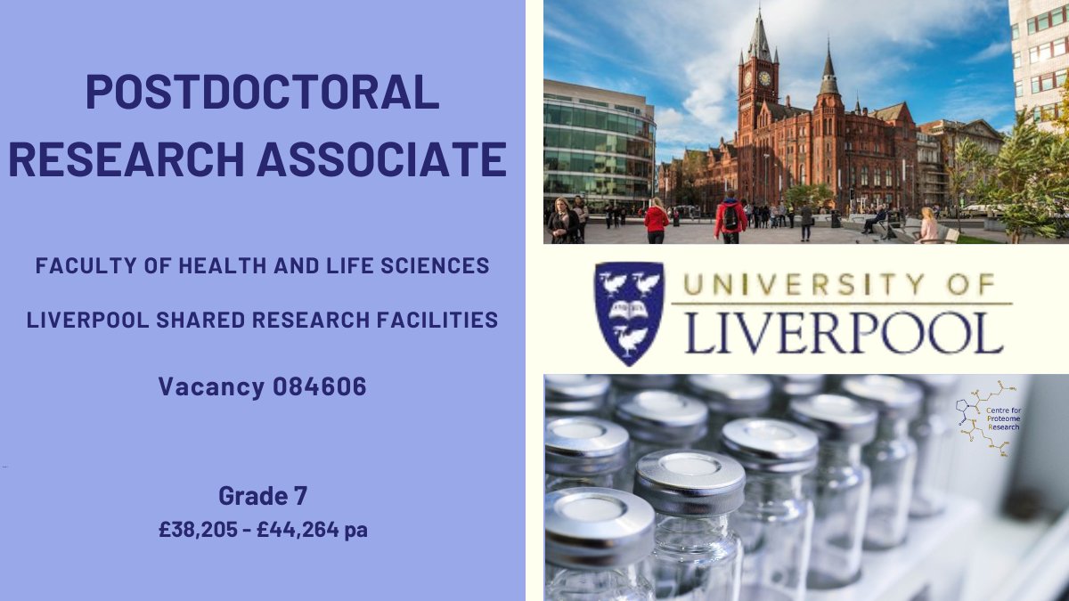 Postdoctoral Research Associate: Exciting opportunity to join the Centre for Proteome Research at Liverpool Shared Research Facilities as a Postdoctoral Research Associate.