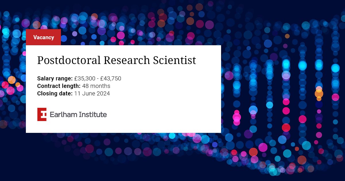 To apply, please visit Earlham Institute Careers Page and submit your application by the closing date.